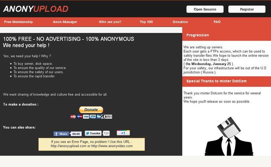 Comentar además que ha aparecido en Internet el sitio anonyupload, según publicitan el ‘Megaupload de Anonymous’ o un sistema de alojamiento de archivos responsabilidad del grupo ciberactivista y que se pondría en circulación el próximo miércoles.
